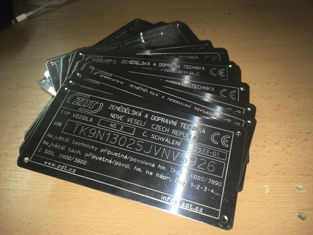 Výroba gravírovaných typizovaných hliníkových štítků do Škoda Auto